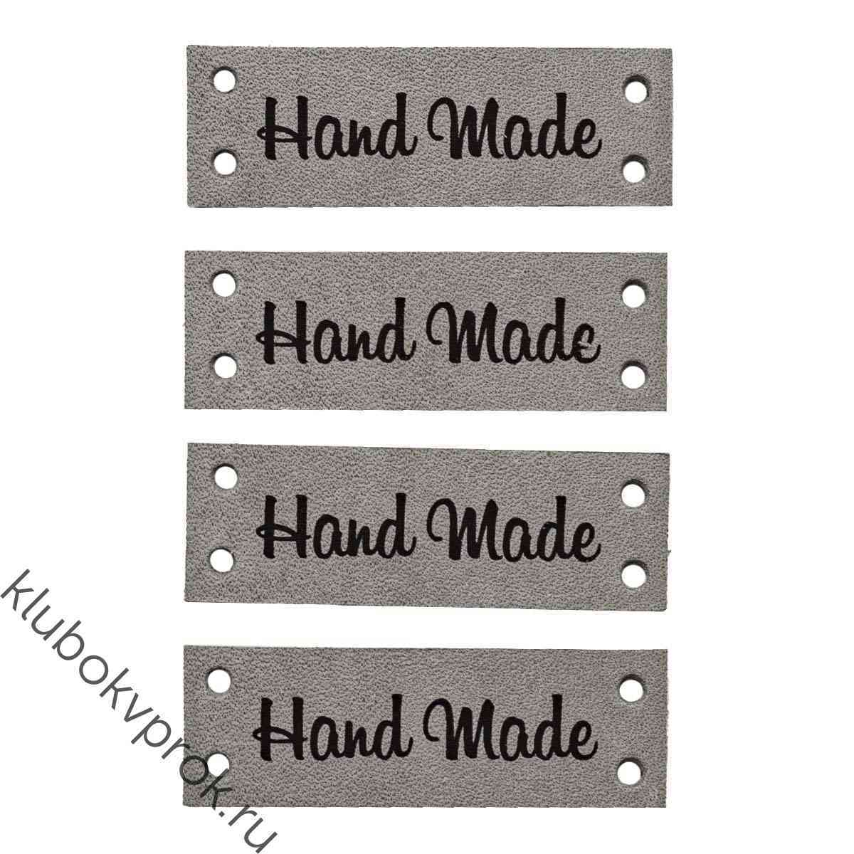 Кожаная бирка пришивная "Hand Made" 14*40мм, Серый